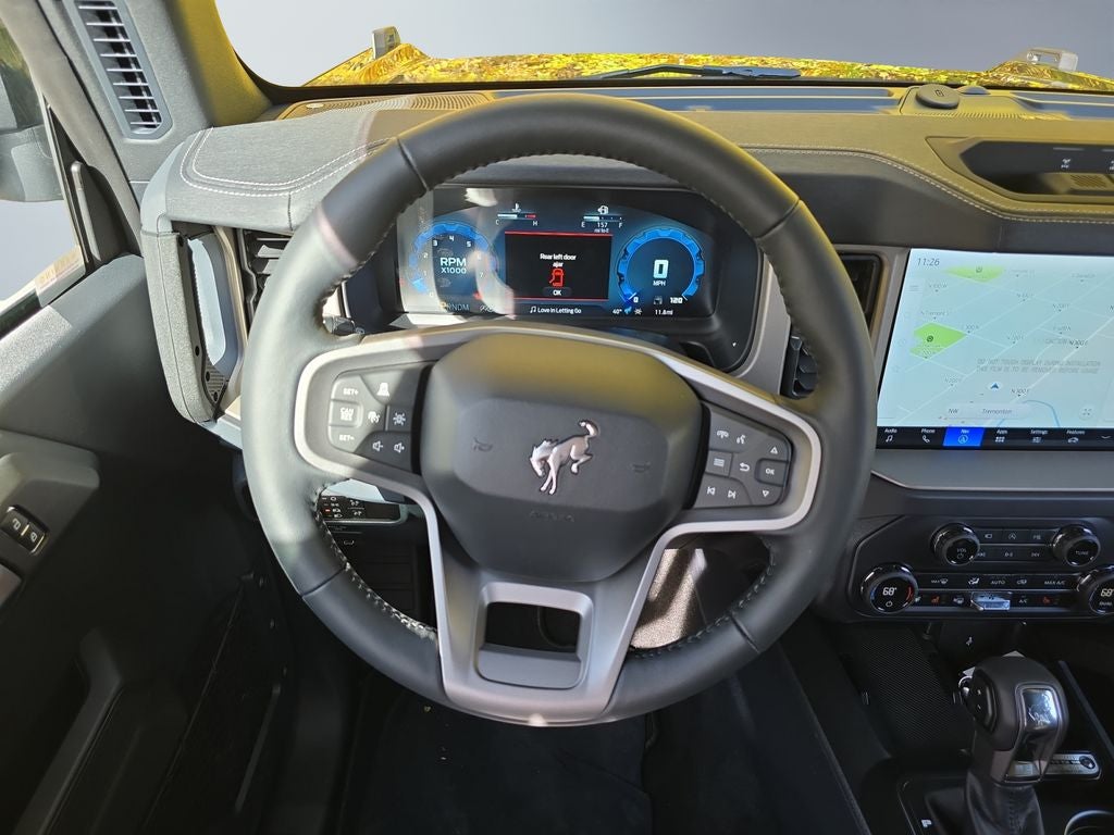 This unit features a hands-free Bluetooth® phone system. This model's Cross-Traffic Alert: Safeguarding you from unexpected traffic when reversing. You'll never again be lost in a crowded city or a country region with the navigation system on the vehicle. The state of the art park assist system will guide you easily into any spot. This vehicle comes equipped with Android Auto for seamless smartphone integration on the road. Never get into a cold vehicle again with the remote start feature on this unit. See what's behind you with the back up camera on this 2025 Ford Bronco . Keep your hands warm all winter with a heated steering wheel in the vehicle . Apple CarPlay: Seamless smartphone integration for the vehicle - stay connected and entertained on the go! An off-road package is installed on this 1/2 ton suv so you are ready for your four-wheeling best. The leather seats in the Ford Bronco are a must for buyers looking for comfort, durability, and style.