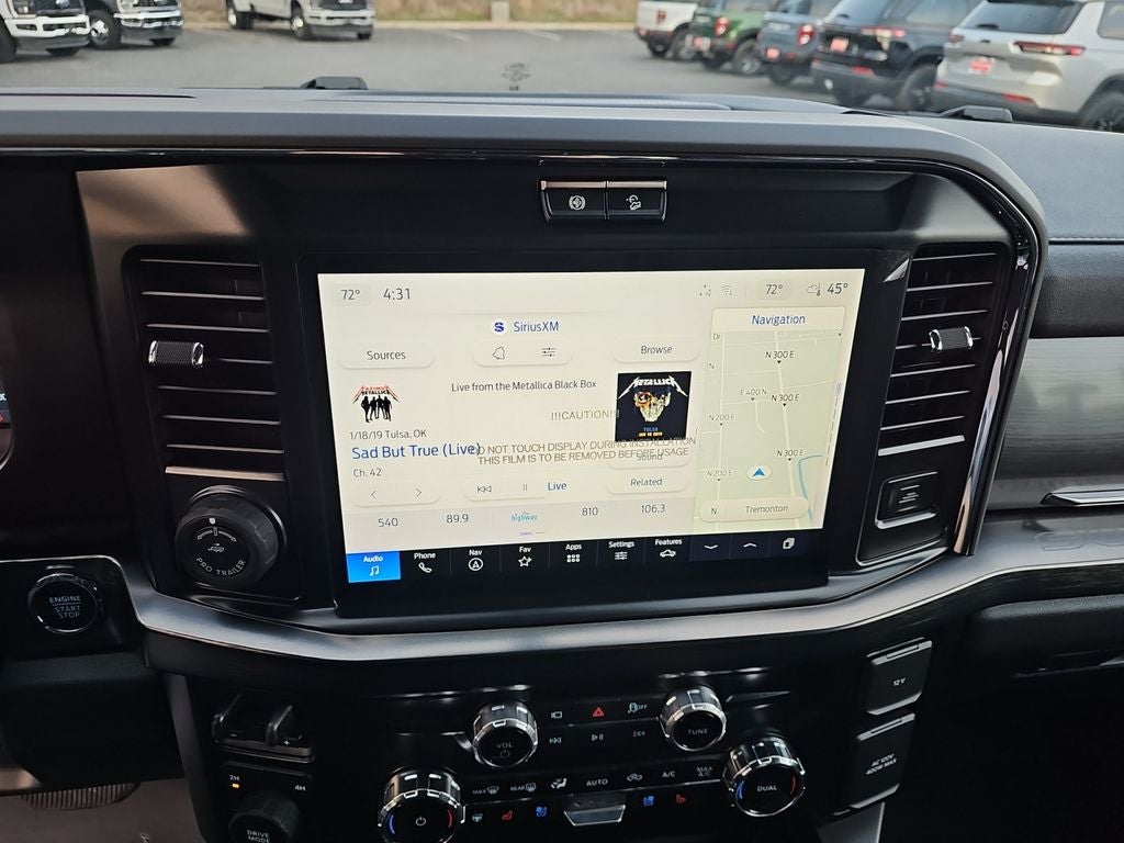 Lariat Premium Package: Pro Trailer Hitch Assist; Power-Sliding Rear-Window with Defrost; Pro Trailer Backup Assist; Pro Trailer Hitch Assist; Power-Sliding Rear-Window with Defrost; Platform Running Boards; Pro Trailer Backup Assist. Ford Co-Pilot 360 Assist 2.0: Pre-Collision Assist; Post-Collision Braking; BLIS with Cross-Traffic Alert; Lane-Keeping System; Front and Rear Parking Sensors; Automatic High Beam; Adaptive Cruise Control with Stop-And-Go. FX4 Off-Road Package: Transfer Case and Fuel Tank Skid Plates; Hill Descent Control; Off-Road Specifically Tuned Shock Absorbers; Unique FX4 Off-Road Box Decal. Order Code 618A: 6.8L 2V DEVCT NA PFI V8 Gas Engine; 18" Bright Machined and Carbonized Gray Aluminum Wheels; Front ActiveX Trimmed 40/console/40 Seats; TorqShift-G 10-Speed Automatic Transmission; LT275/65Rx18E BSW A/S Tires; 11. 000 Lb Payload Package GVWR; 3.73 Axle Ratio; B&O Sound System by Bang and Olufsen. 5th Wheel/gooseneck Hitch Prep Package. Tough Bed Spray-In Bedliner. Power-Sliding Rear-Window with Defrost. Electronic-Locking with 3.31 Axle Ratio. Argon Blue Metallic. Tailgate Step and Handle. Rapid-Heat Supplemental Cab Heater. LT275/70Rx18E BSW A/T (4) Tires. All-Weather Floor Mats. **Equipment listed is based on original vehicle build and subject to change. Please confirm the accuracy of the included equipment by calling the dealer prior to purchase.**